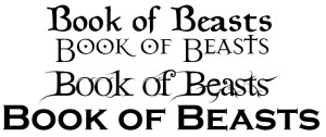 The font below that one to me says “Gothic Horror.” It makes me think of Dracula and all the classic horror stories we geeks grew up on. That’s good, but I’m not sure if that is what I am looking for with this one. I will admit, since I used it in Book of Beasts: Wandering Monsters 1 as the logo, this font might be chosen. Branding is important.