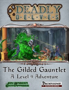 “[I]t’s very hard to generate a module that challenges veterans, yet remains FAIR. The gilded gauntlet manages just that. This is one of the hardest dungeon-complexes I have ever had the pleasure to run, but it is hard without resorting to ridiculous amounts of save-or-suck tricks or unfair enemy/hazard placement, instead focusing on presenting a tightly-woven, intricate web of unique rooms and tricks, on showing what you can do with the format. In short, this is one of the best examples of a gauntlet-style dungeon I have ever seen…also thanks to its impressive use of blending terrain, strategy and cartography in its challenges.