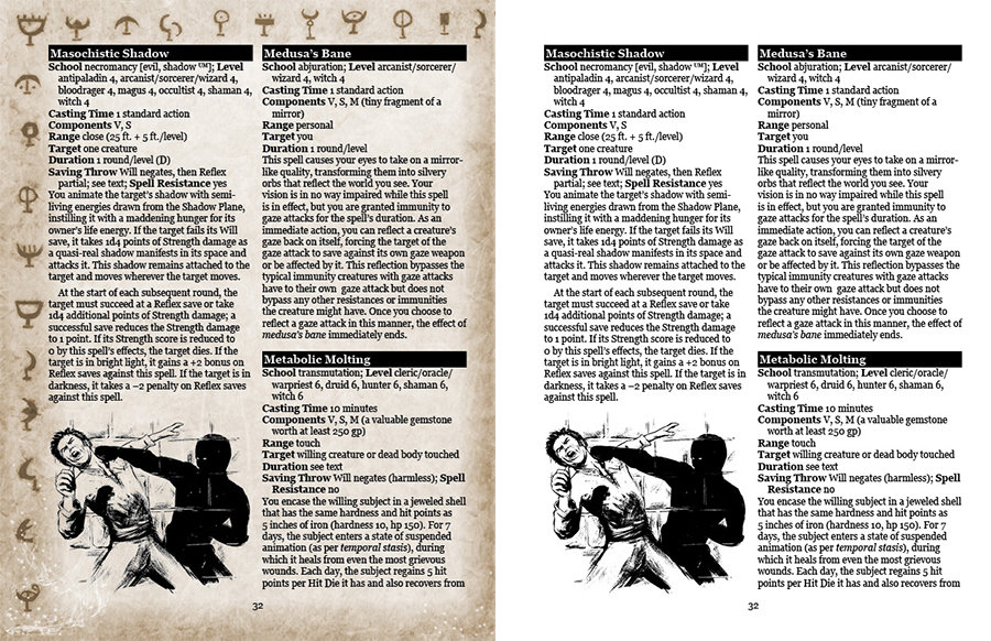 Previously when talking about the Book of Magic: Spell Codex Volume 1 we shared the spells inside. So far we shared domination link as well as share skin and greater share skin. Today we want to show off some of the artwork within.