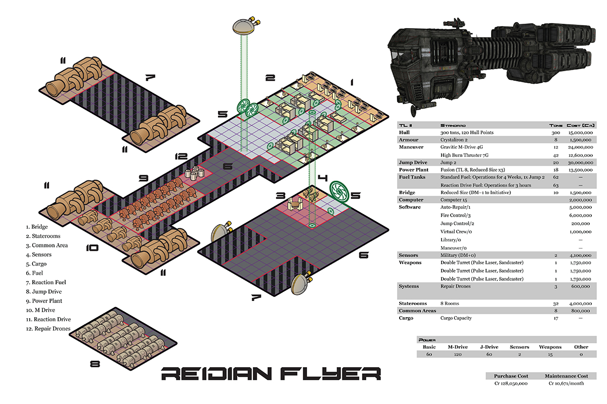 Whenever I play Traveller, I like to have the ship my players are in in a large format hanging on a wall for quick reference so they can see it in full detail. So when I set up to do the single ships for Traveller, I decided to include a poster map of the shipsContinue reading “Traveller: Reidian Flyer Poster”